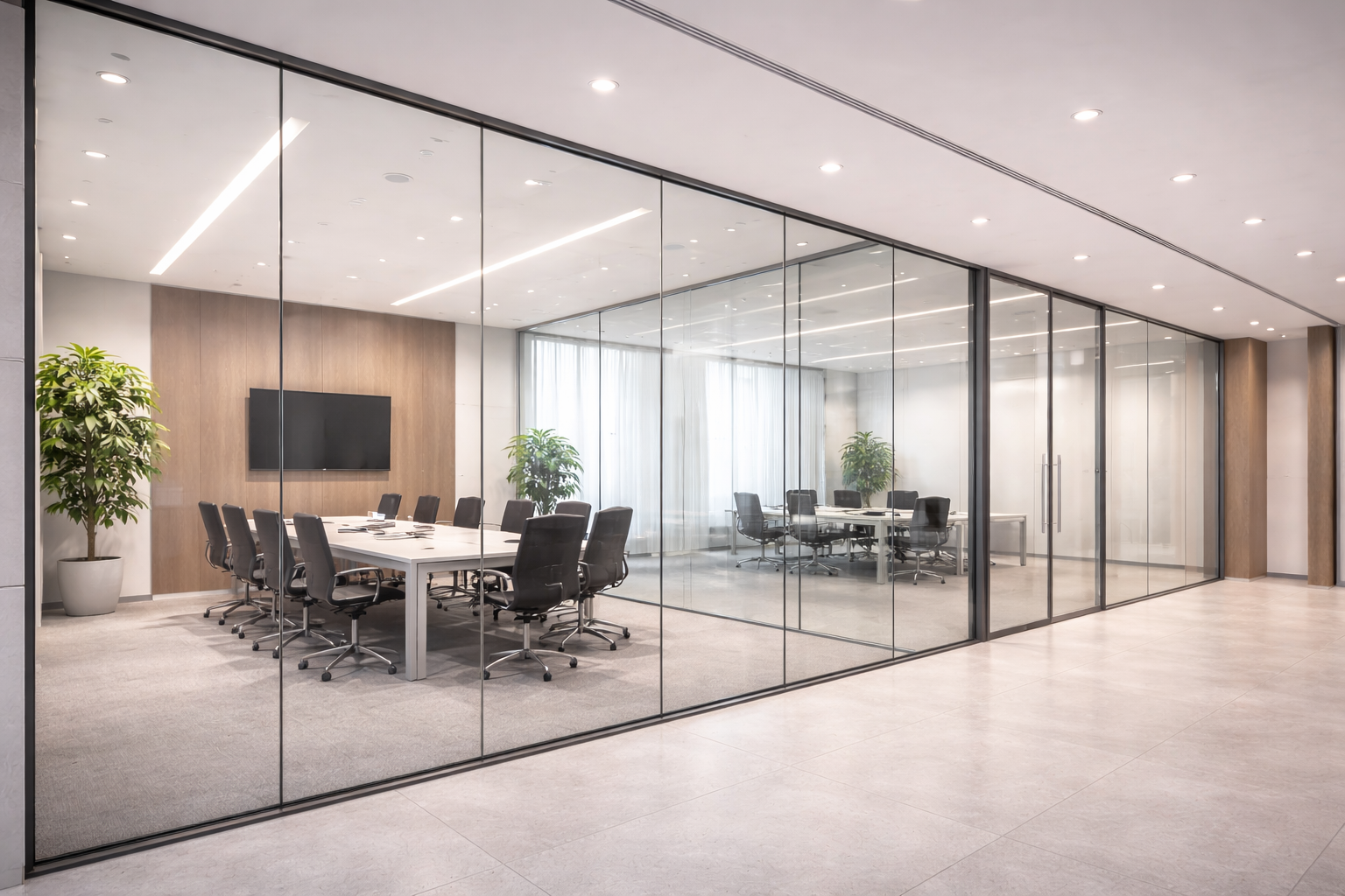 تنفيذ فواصل زجاج سيكوريت للمكاتب والشركات تساعد على تنظيم المساحات مع الحفاظ على المظهر العصري والاحترافي.