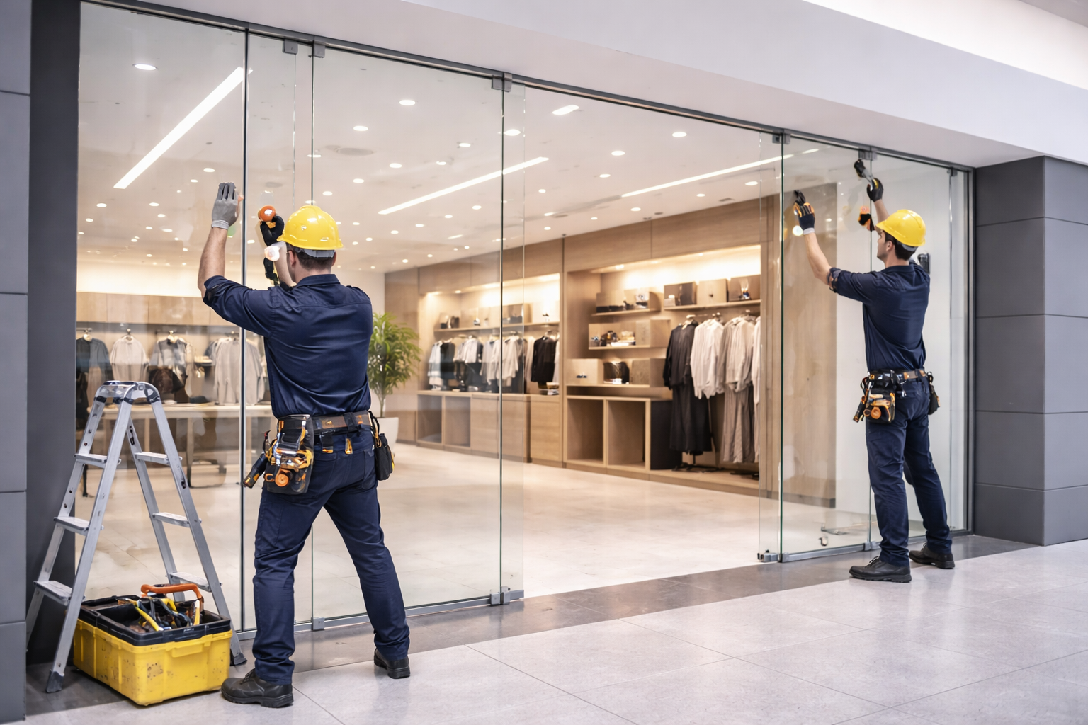نقوم بتركيب واجهات زجاج سيكوريت للمحلات والمعارض بتصميم عصري يعكس فخامة المكان ويزيد من جاذبية النشاط التجاري.
